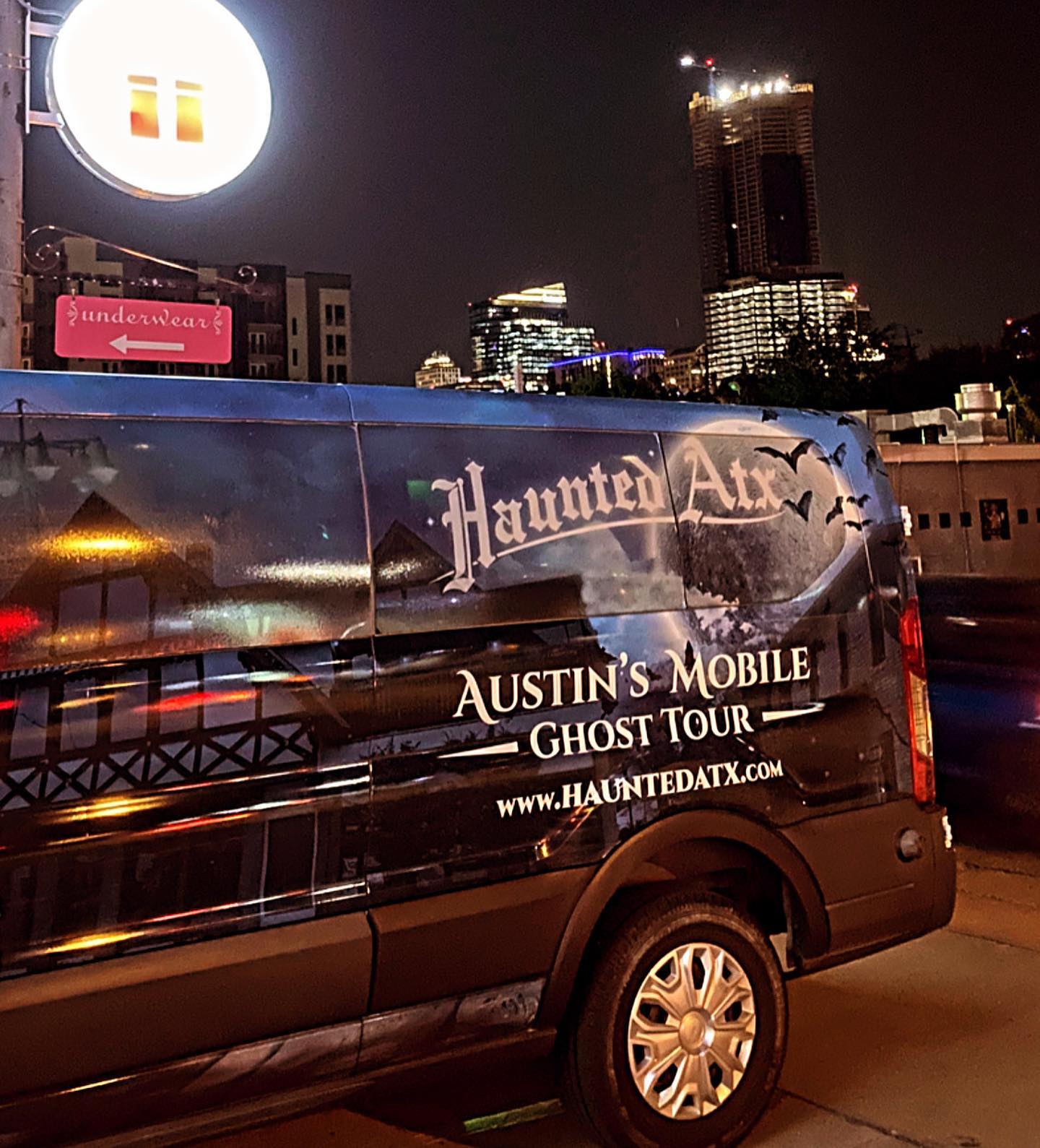 More seats, air conditioning, and a custom art wrap — same haunted Austin history.