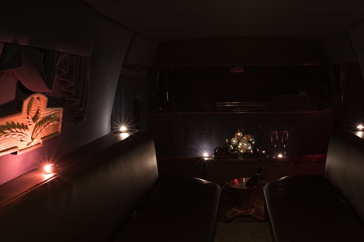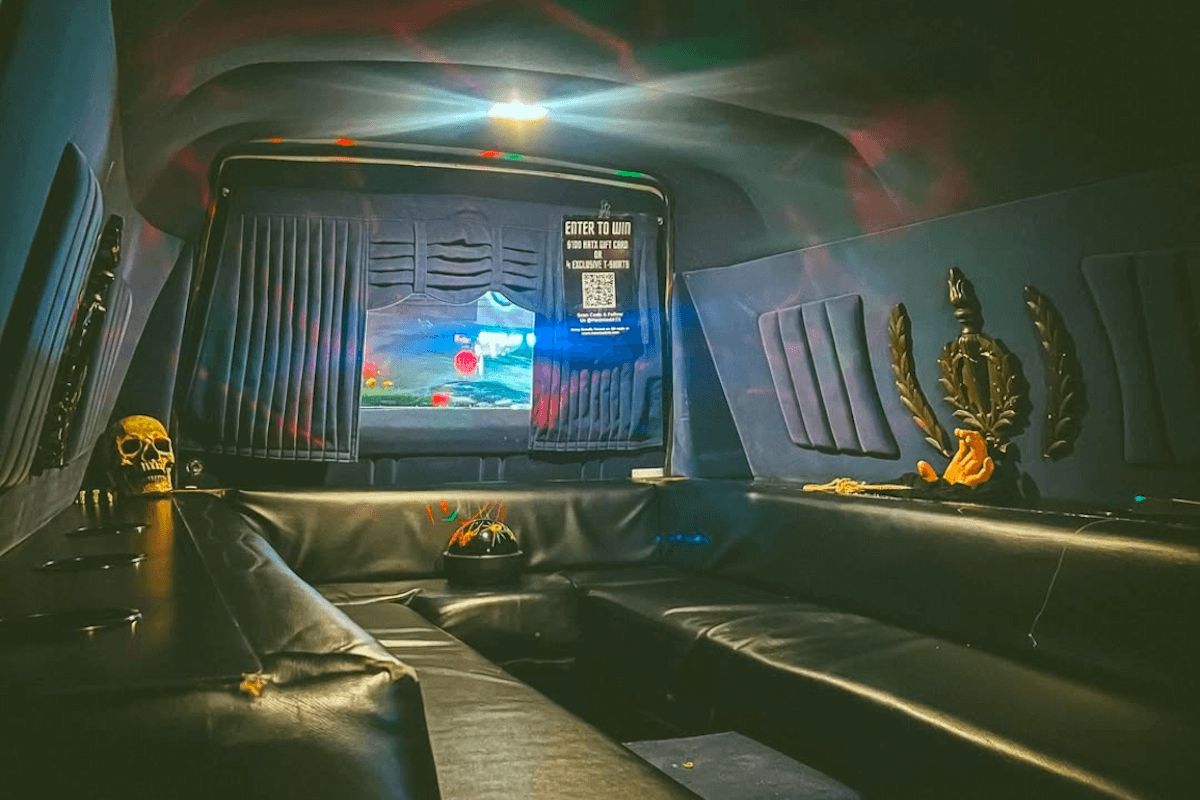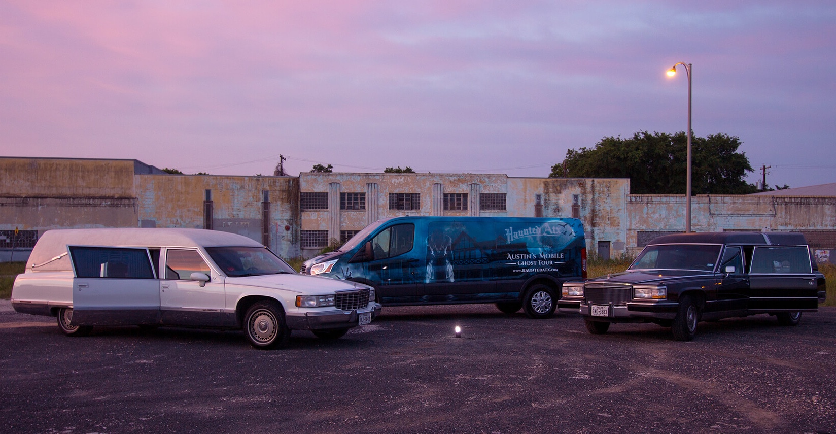Climb into a classic Cadillac hearse converted into a spooky limousine and explore Austin after dark.